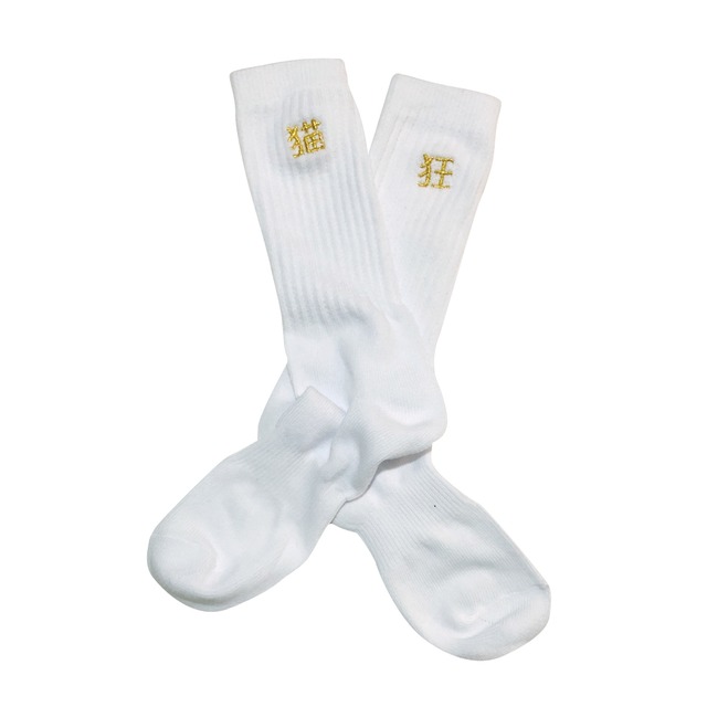 猫狂ソックスです! ぜひ熱烈な猫スキの方に履いて欲しい♡ パワーワードを金刺繍でパンチのある一足です しっかりした生地のスポーツソックスで メンズ・レディス兼用です〜 ーーー [素材] コットン 100% [サイズ] 24~27cm *PC・スマホの画面により、実際の商品の色合いと異なる場合がございます 上記予めご了承ください
